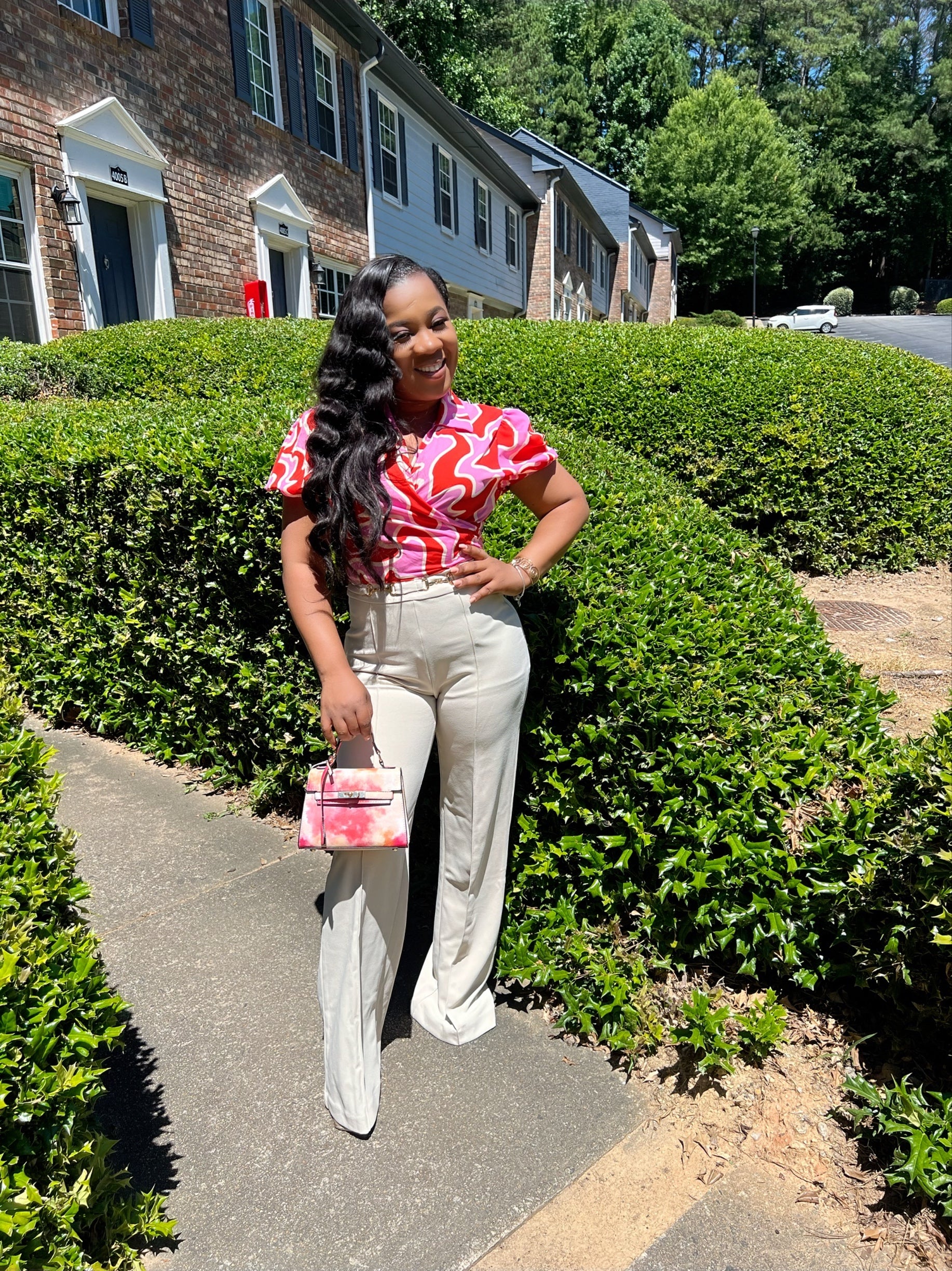 Model 5’2 wearing a size small has stretch